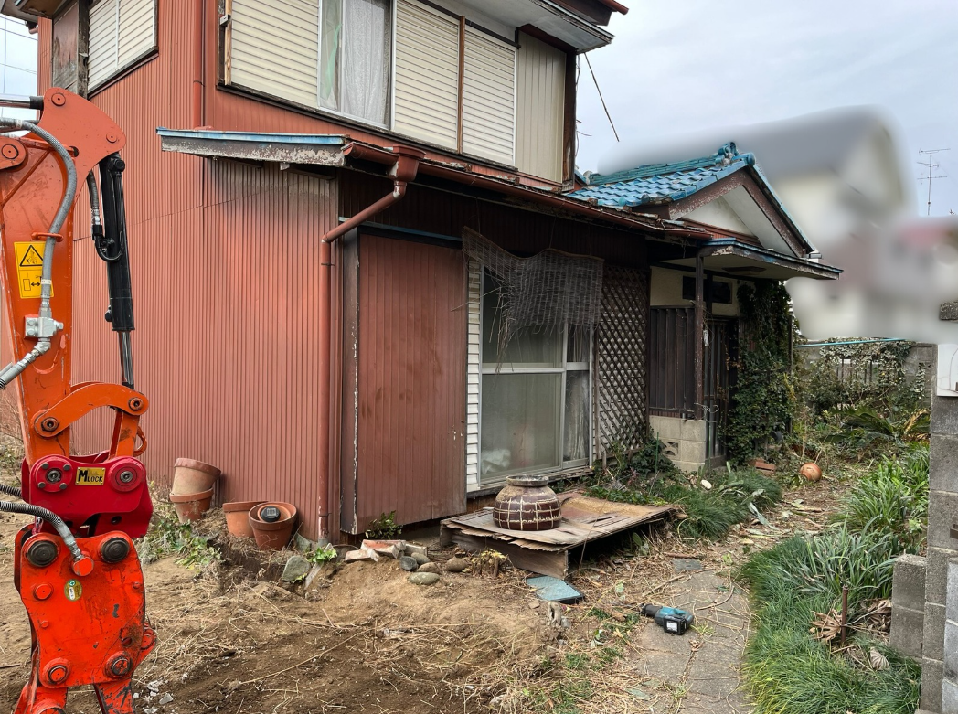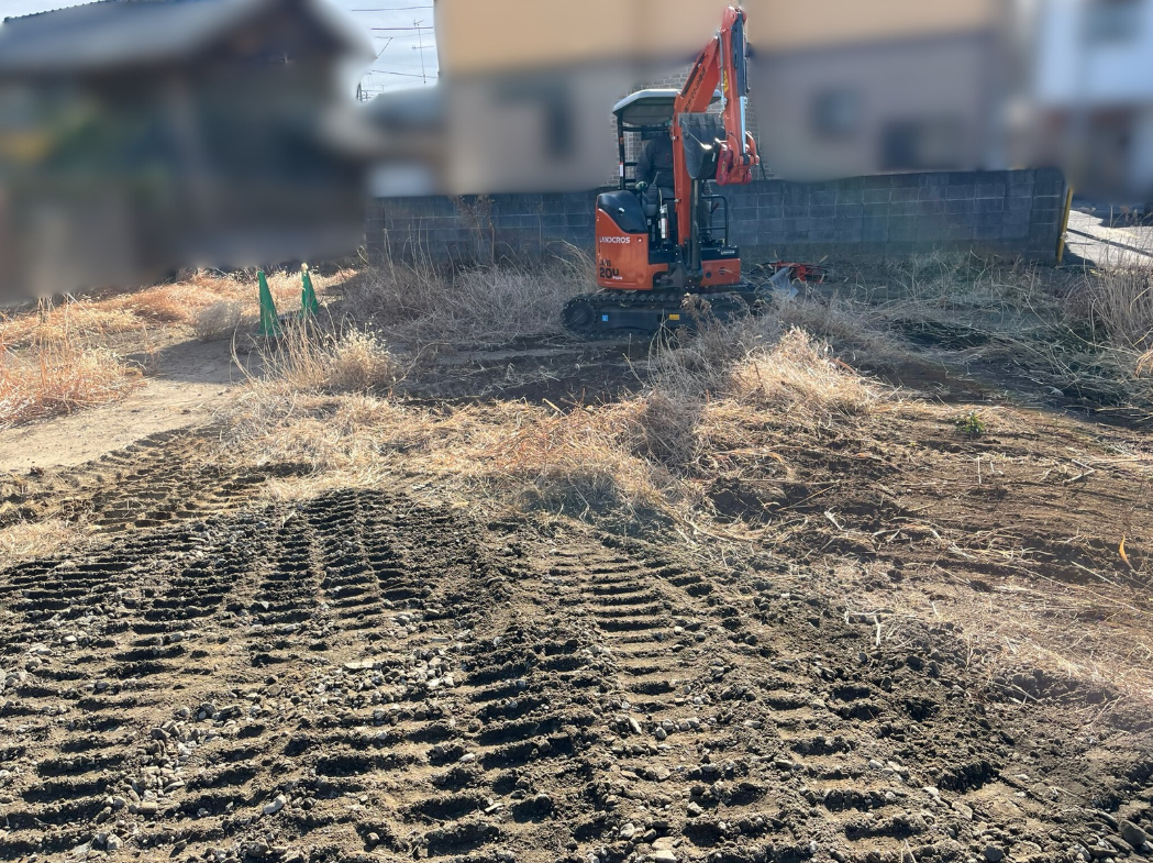 今回のご紹介は、解体工事前に、作業車両が安全に出入りできるよう、敷地内の整理・整地作業です。