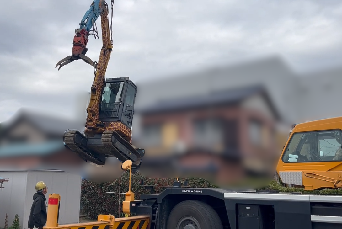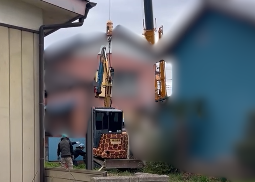 【施工事例】車が入らない狭隘路でも諦めない!クレーン揚重による重機搬入と解体工事